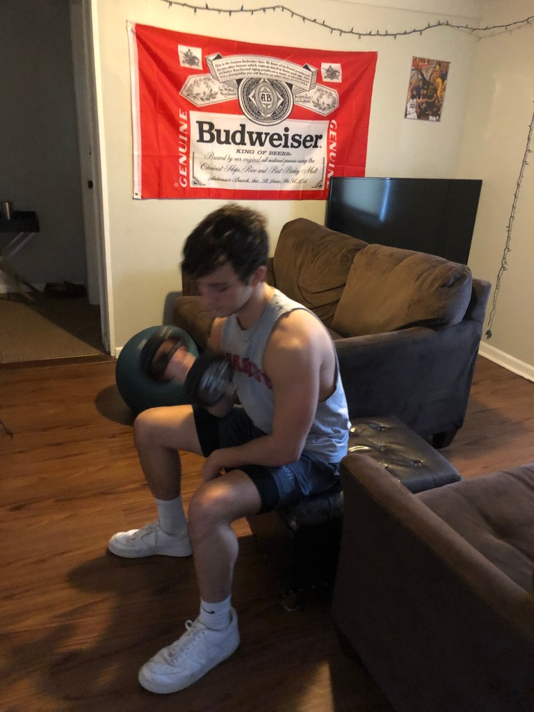 Following his lift, he would take a shower and get underway with his school work, that was now all online.